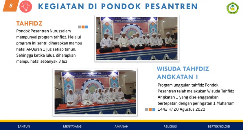 www.nurussalam86.sch.id - Pondok pesantren Nurussalam mempunyai program tahfidz. Melalui program ini santri diharapkan mampu hafal Al-Quran 1 Juz setiap tahun. Sehingga ketika lulus, diharapkan mampu hafal sebanyak 3 Juz